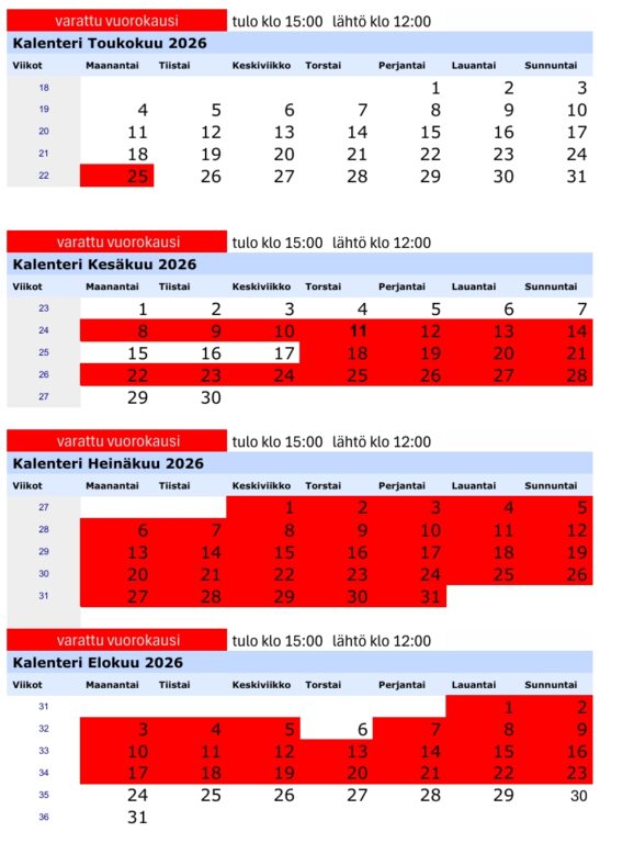 Myös pidempiaikaiset vuokraukset ja juhannus kysy tarjous.